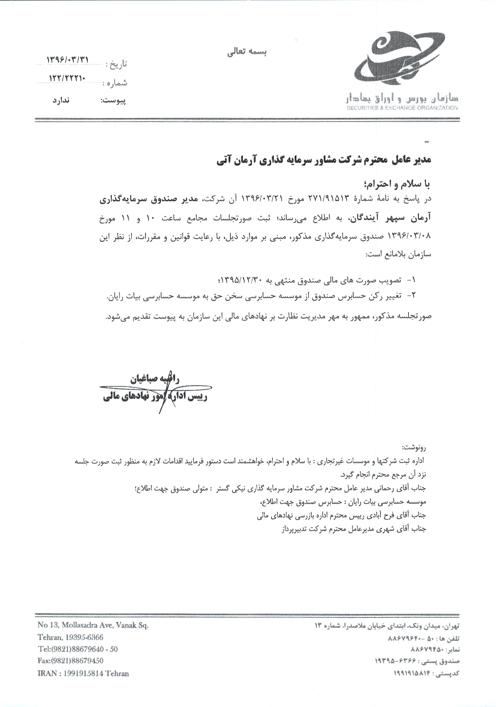 تایید صورتجلسه مجمع صندوق توسط سازمان محترم بورس و اوراق بهادار